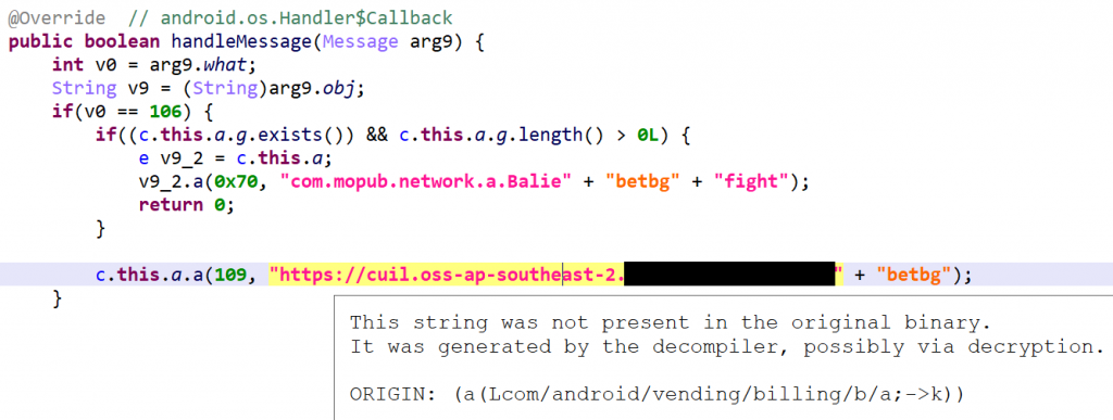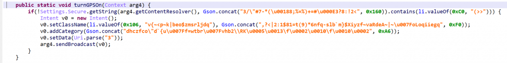 A variety of techniques exist, ranging from simple one-off trivial decryptor methods, to complex schemes involving object(s) creation, complicated decryptors injected in third-party packages, non-trivial logic, junk code meant to slow down analyzers, use of opaque predicates, etc. They are implemented in an infinite number of ways. JEB’s generic deobfuscator can perform quick, safe emulation of the intermediate representation to provide a replacement. It may sometimes fail or bail out due to several reasons, such as performance or pitfalls like anti-emulation and anti-sandboxing techniques.