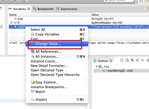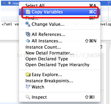 我们可以variables view中 copy variables,但需要稍微修改一下,看格式 readLine"。。。" (id=23)