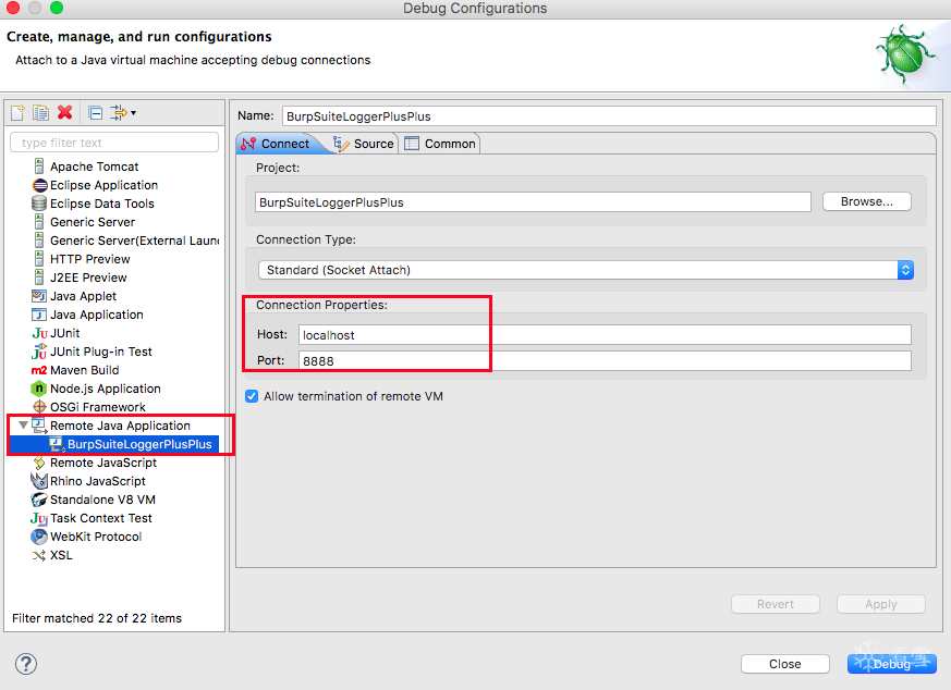 $ java -agentlib:jdwp=transport=dt_socket,server=y,suspend=n,address=8888 -jar burpsuite_free_v1.7.23.jar