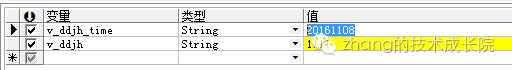 变量的声明在begin之前,用;隔开多个变量,变量以及参数的赋值用v_dd :='111';,在程序块。