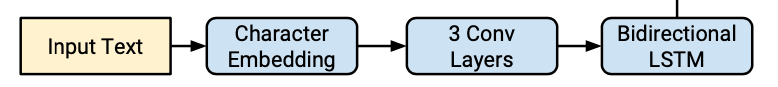 Encoder主要包含Embeding层、三层的1d的卷积层、以及一层双向的LSTM层。