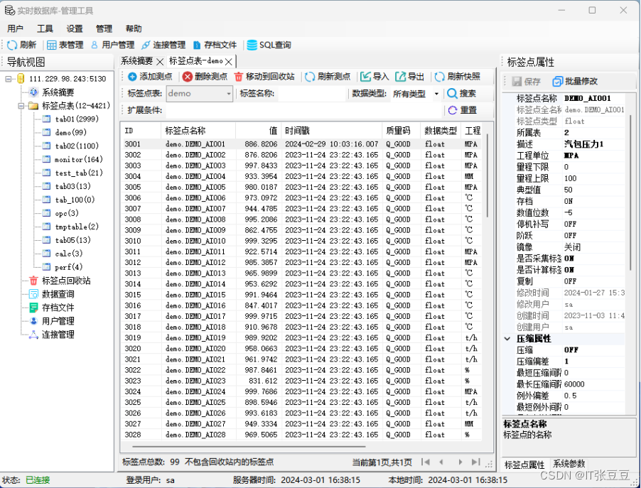 长沙巨松科技的正弦实时数据库专为处理工业传感器数据设计,具备百万标签点管理、高并发、快速查询写入及高可用特性,支持数据滤波、压缩、镜像等功能,并兼容多平台,提供开放和模块化架构。