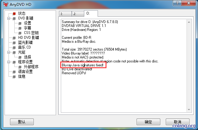 anydvd hd从6.7.9.0以后就不再支持java签名修复,所以请不要使用高于6.7.9.0的版本