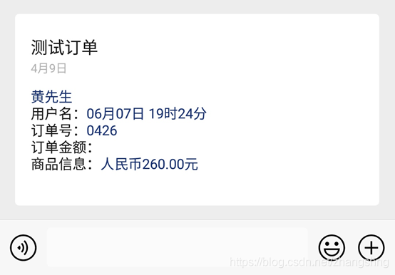 | {{first.DATA}} 用户名:{{keyword1.DATA}} 订单号:{{keyword2.DATA}} 订单金额:{{keyword3.DATA}} 商品信息:{{keyword4.DATA}} {{remark.DATA}} 复制粘贴进去就可以了。