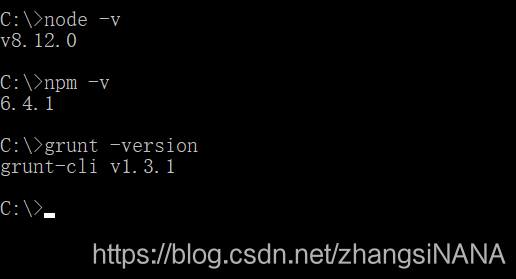 安装成功后,执行grunt -version,显示如下则代表安装成功: