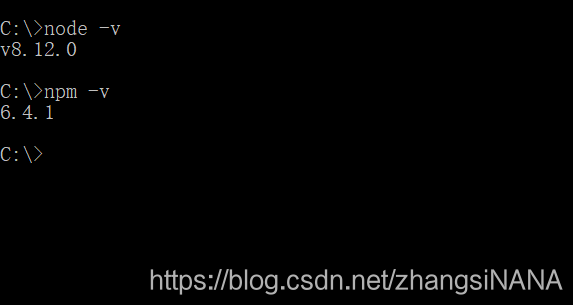 使用管理员权限打开命令行,执行node -v和npm -v,显示如下则代表安装成功: