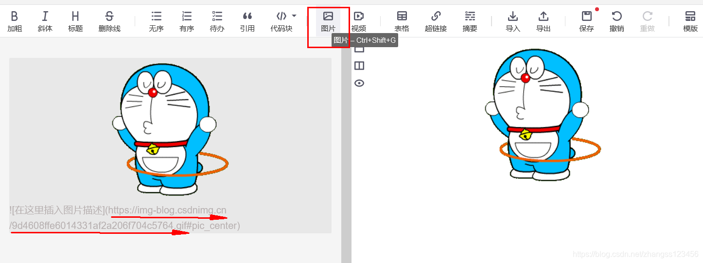 第一步:您打开Markdown编辑器,在编辑器上方的工具栏选择图片,进行上传图片后复制图片链接