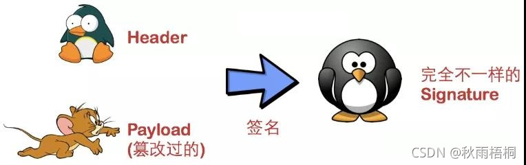 最后一步签名的过程,实际上是对头部以及载荷内容进行签名。一般而言,加密算法对于不同的输入产生的输出总是不一样的。对于两个不同的输入,产生同样的输出的概率极其地小(有可能比我成世界首富的概率还小)。所以,我们就把“不一样的输入产生不一样的输出”当做必然事件来看待吧。