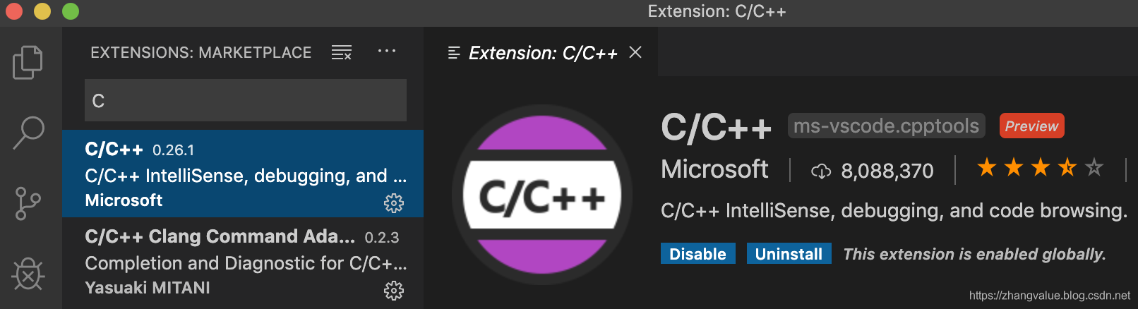 解压安装后,打开VSCode 按快捷键shift+command+X,并在搜索框输入c/c++ 安装插件c/c++和c/c++ Clang Command Adapter,实现 C/Cpp 代码自动补全,函数跳转。