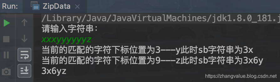 System.out.println("当前的匹配的字符下标位置为"+i+"---"+s+"此时sb字符串为"+sb);