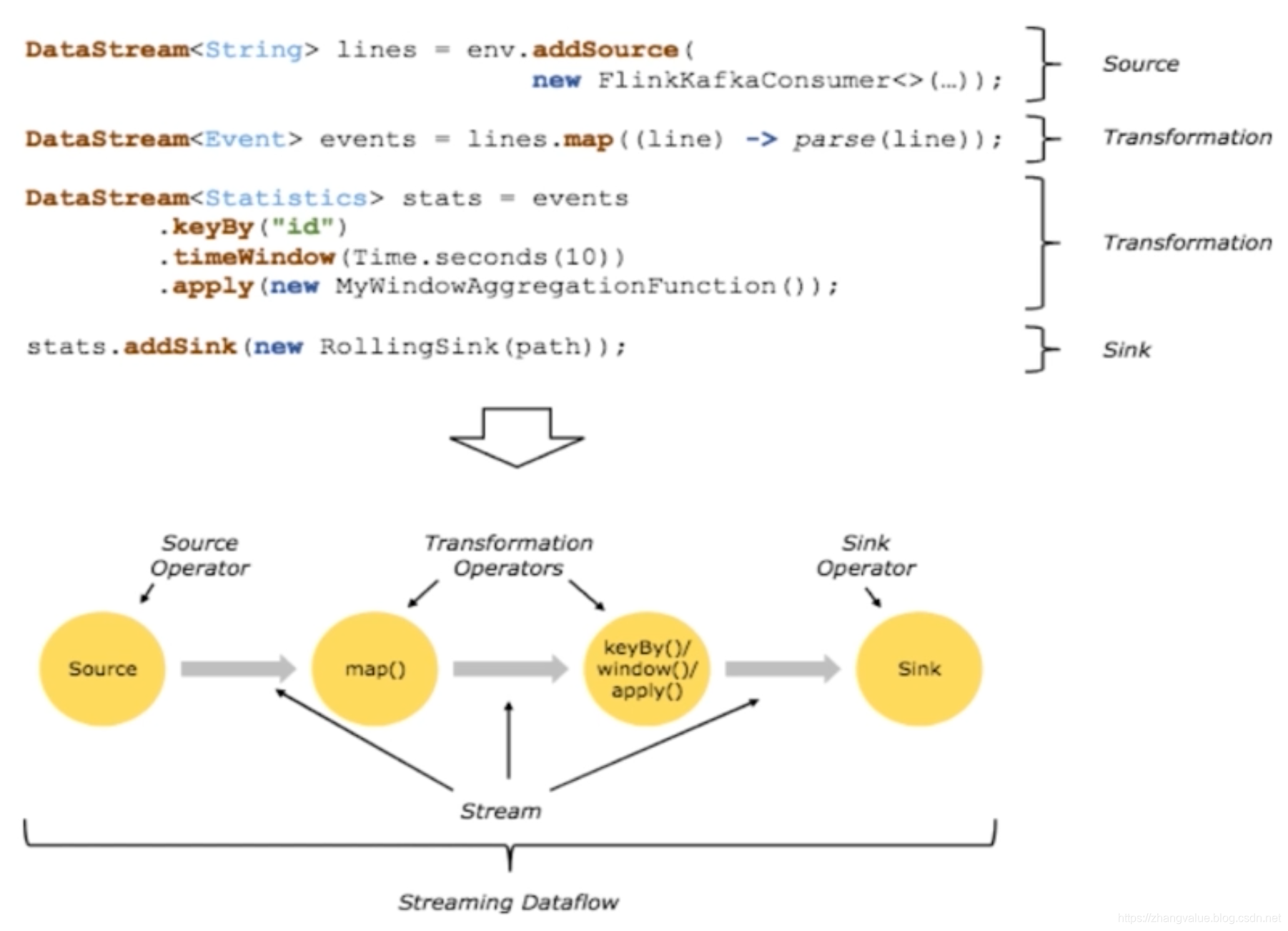 Flink程序的基础构建模块是流(Streams)与转换(transformations)