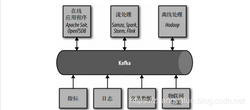 )或安全分析应用程序。更改目标系统(比 如日志存储系统)不会影响到前端应用或聚合方法,这是 Kafka
