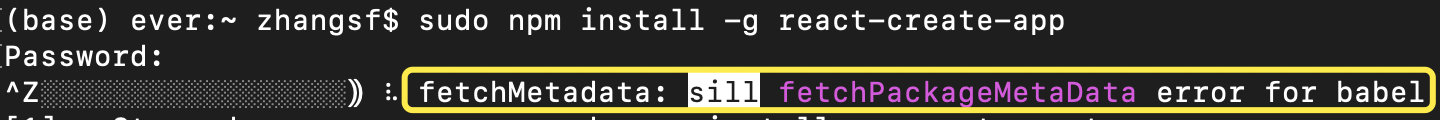 如下图在进行react脚手架的安装的时候一直停留在fetchMetadata
