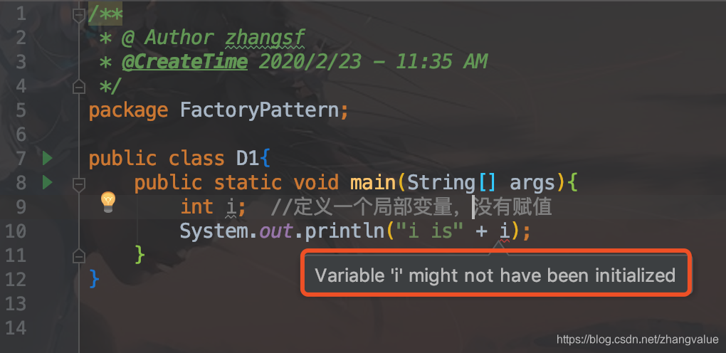 代码验证一下局部变量必须初始化之后才可以使用,否则就会报错
