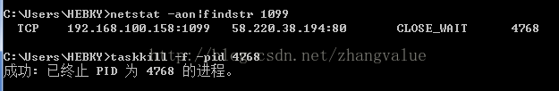 2,使用命令:taskkill -f -pid 进程ID