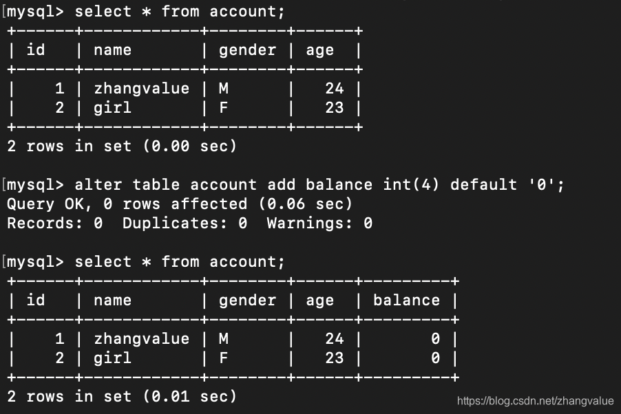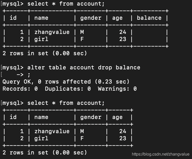 十三、查询test库中的account表中信息(会发现表信息为空)