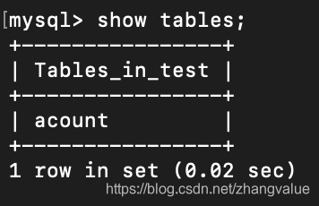 十二、查看当前库里面有多少表,test库刚刚只是创建了一个account表
