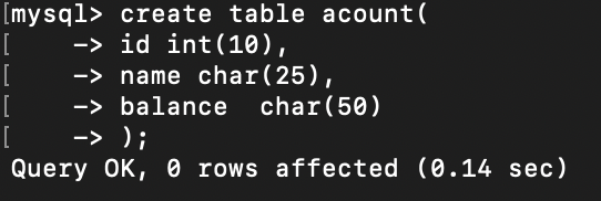 十一、创建表:比如创建一个acount表其中的属性包括id,name,balance三个属性