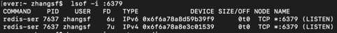 lsof -i tcp:6379