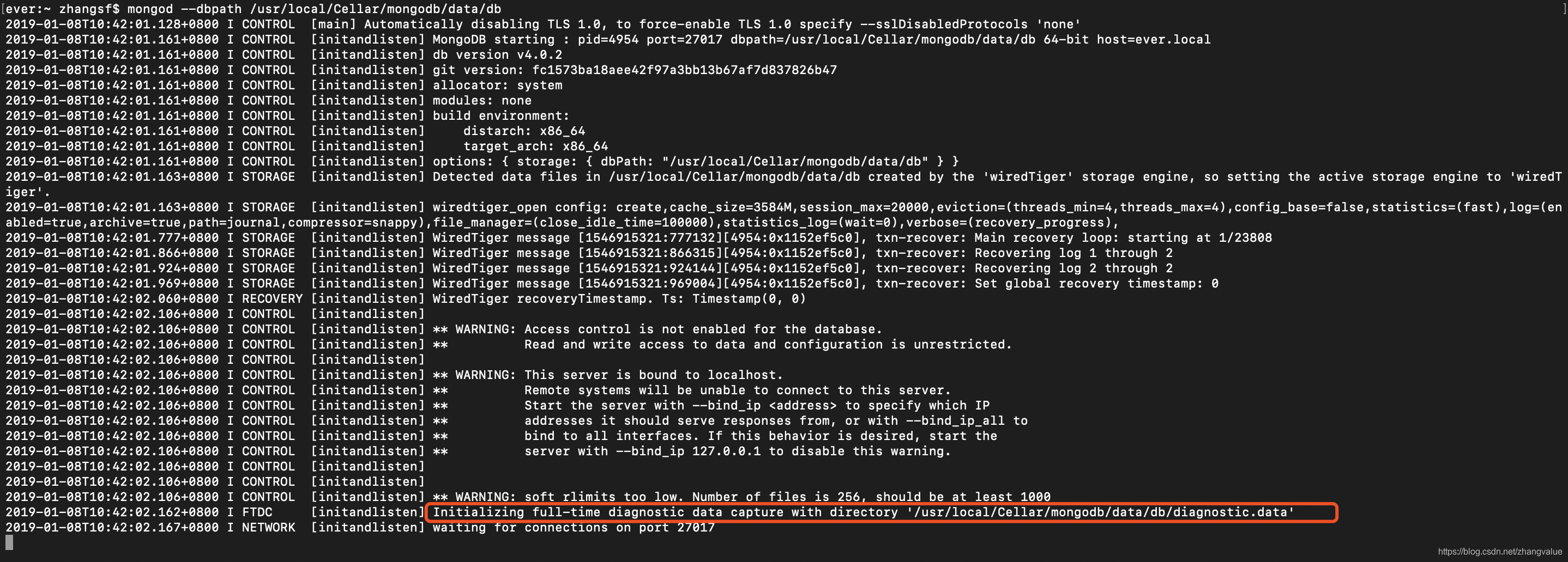 mongod --dbpath /usr/local/Cellar/mongodb/data/db