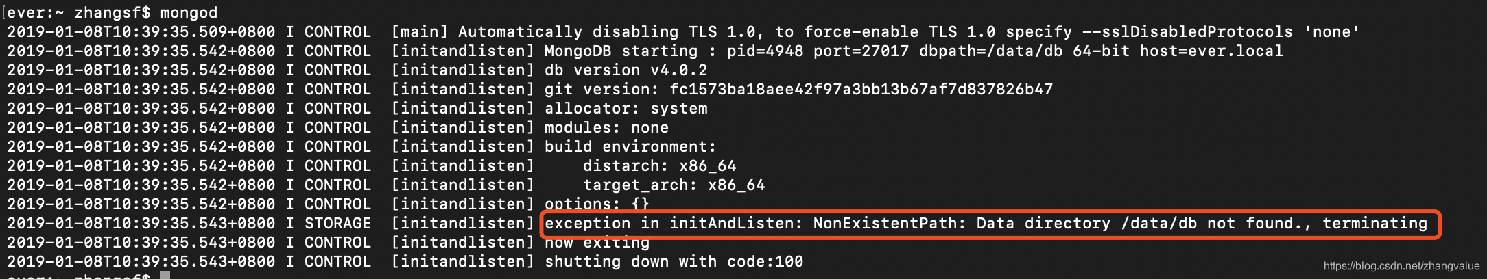 exception in initAndListen: NonExistentPath: Data directory /data/db not found., terminating