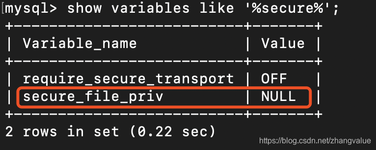 结果发现secure-file-priv为空,此时需要为它配置一个文件夹。