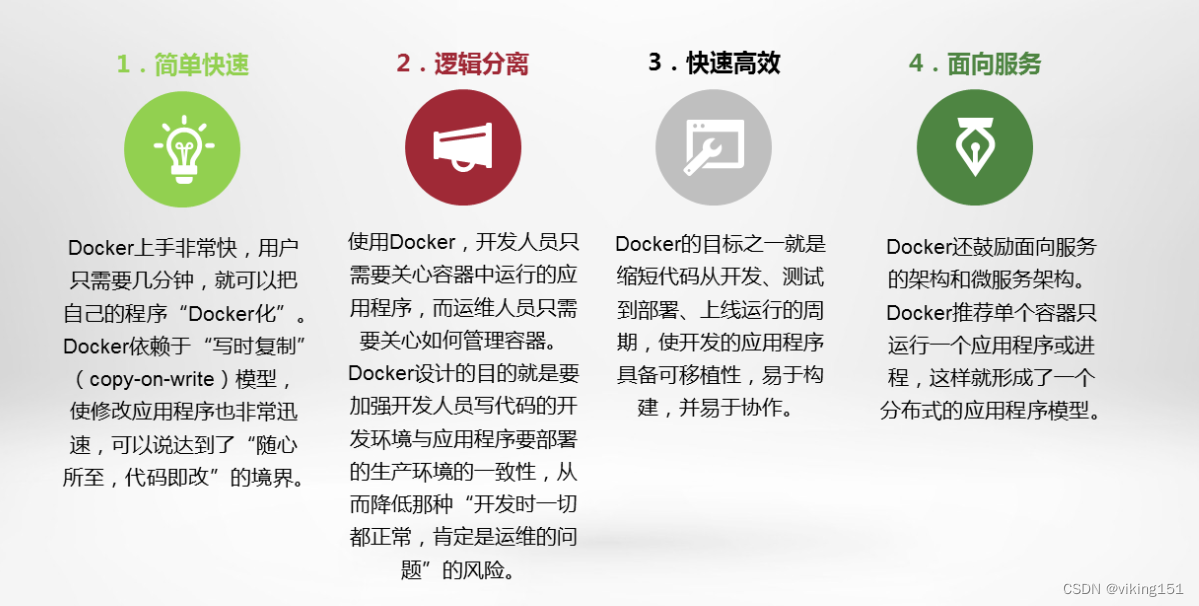 学习成本非常低 --->安装docker时不跟虚拟机的安装过程那么繁琐,不管用得着用不着配这配那的,所以学习成本非常低。