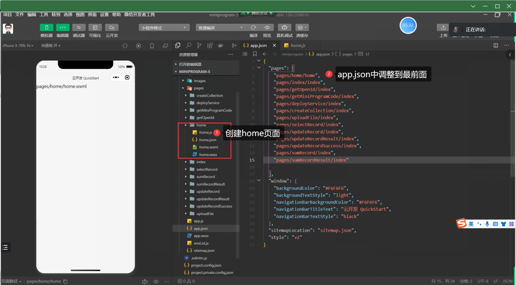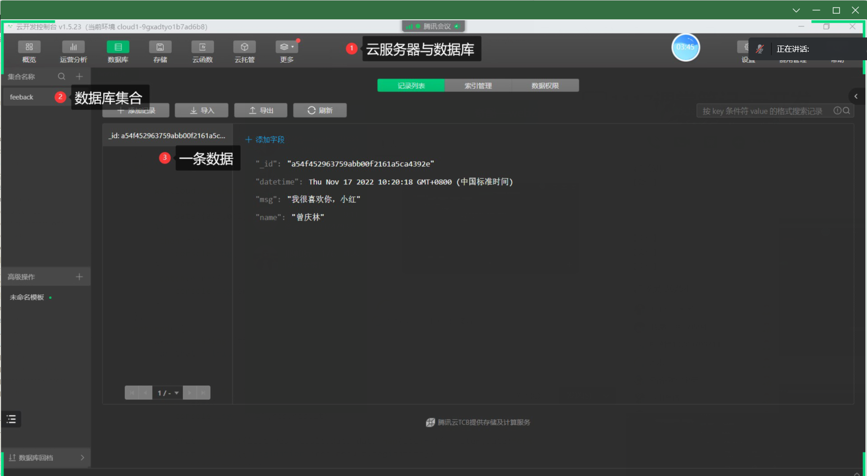右击cloudfunction,选择当前环境;然后再右击cloudfunction->新建node.js云函数,创建完成后文件夹会自动生成3个文件config.json、index.js、package.json。在index.js定义数据库,并获取数据。