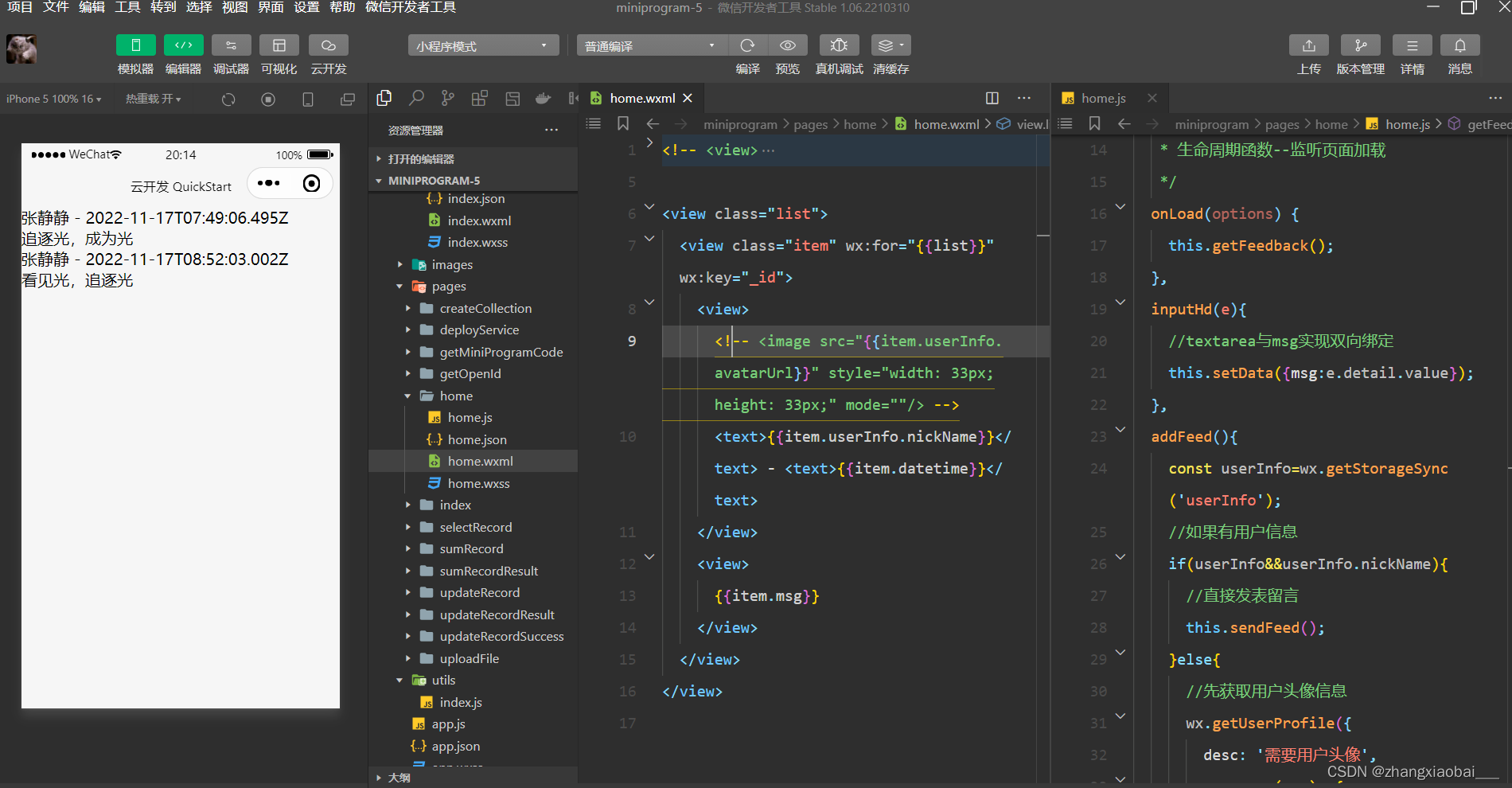 <text>{{item.userInfo.nickName}}</text> - <text>{{item.datetime}}</text>