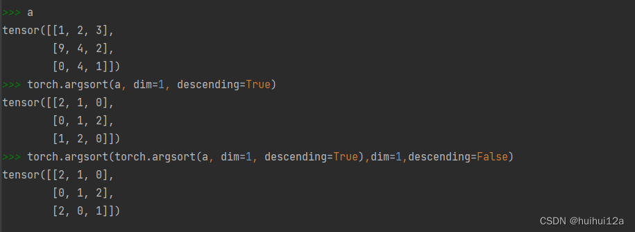 使用一个argsort后得到的是张量中按列降序排序后的索引,