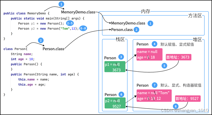 - 把Memory.class文件和Person.class文件加载进内存的方法区