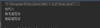 public class Test { public static void main(String[] args) { Person person = new Ancient(); person.doJob(); person.setPen(new Pencil()); person.doJob(); } }