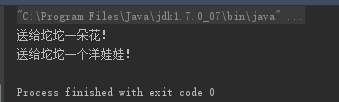 public class Suitor implements GiveGift { @Override public void giveFlower(Girl girl) { System.out.println("送给"+girl.getName()+"一朵花!"); } @Override public void giveDolls(Girl girl) { System.out.println("送给"+girl.getName()+"一个洋娃娃!"); } }