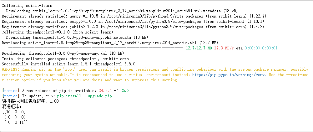 print(f"随机森林测试集准确率:{accuracy:.2f}") # 输出:准确率约0.97(很高)