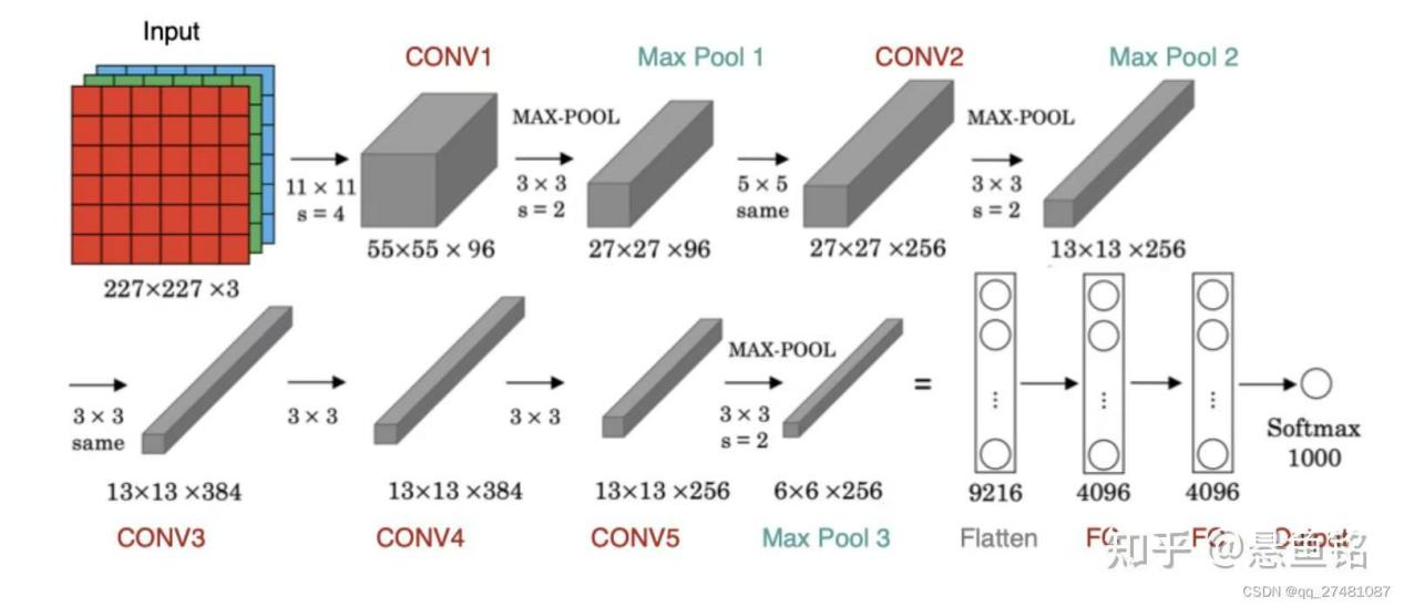 - 技术普及:让 ReLU、Dropout、数据增强成为 CNN 训练的 “标配”,Batch Normalization、残差连接等后续创新也基于 AlexNet 的框架衍生。