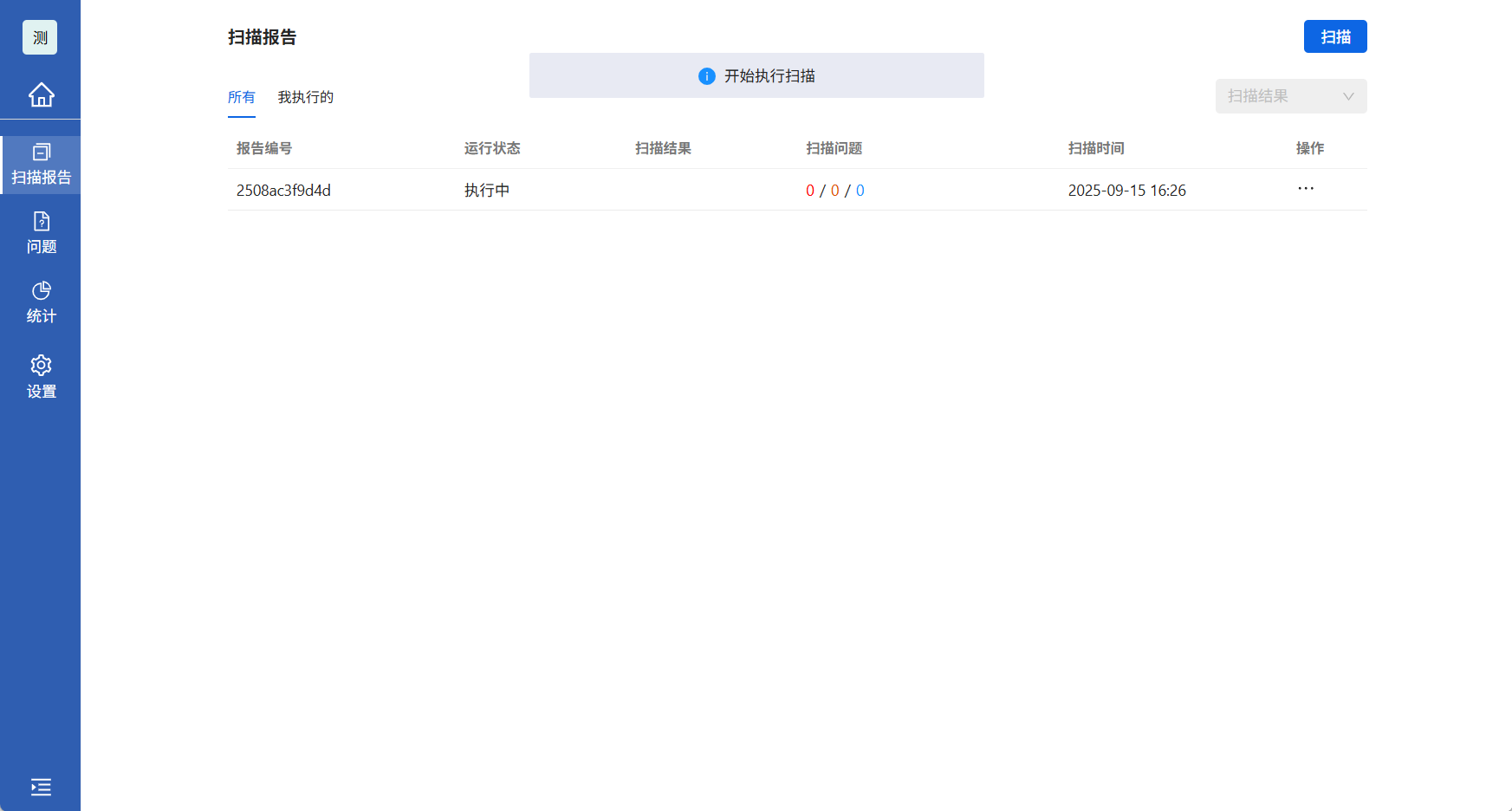 代码上传完成后,点击右上角扫描按钮,进行代码扫描。