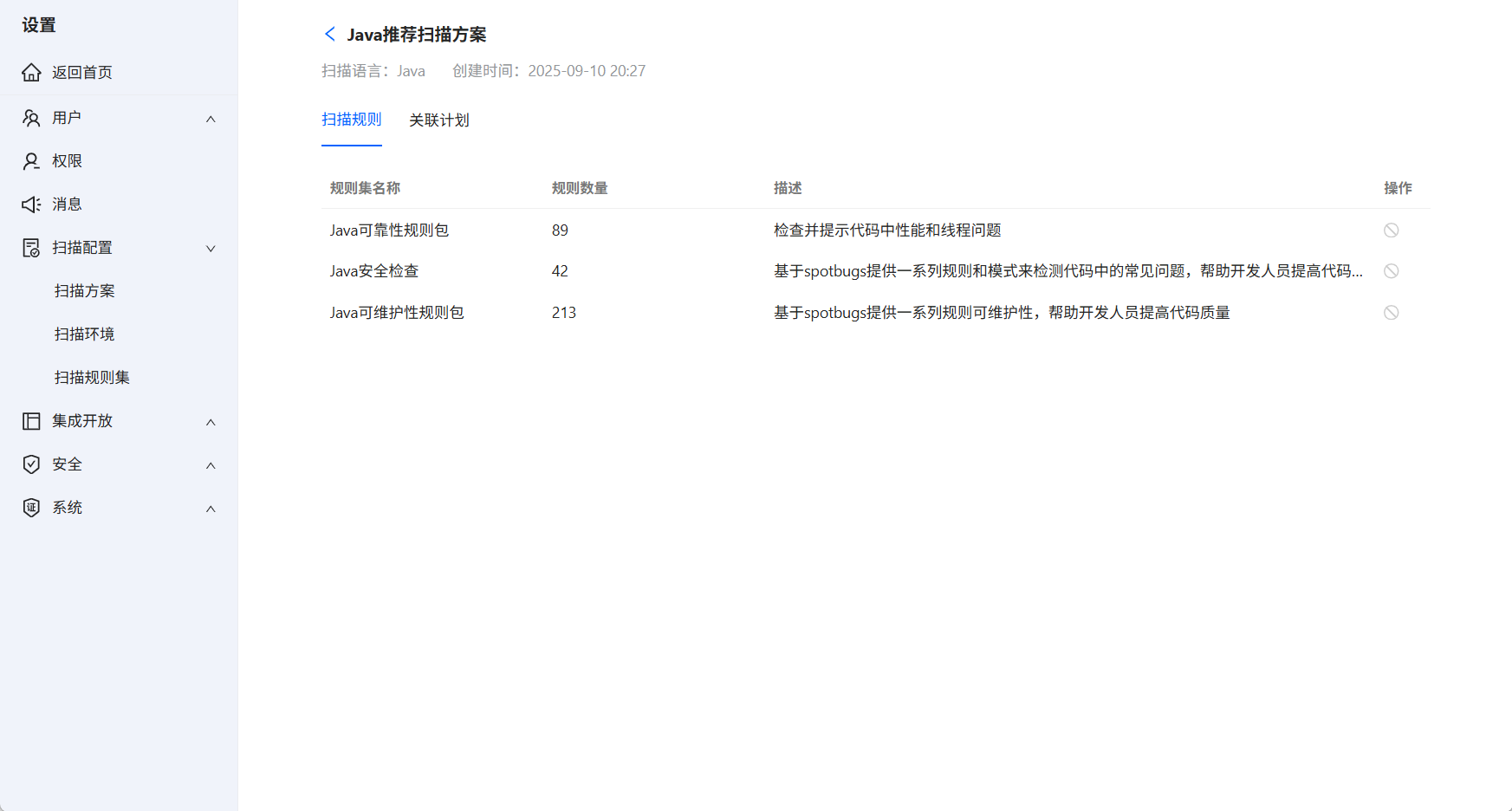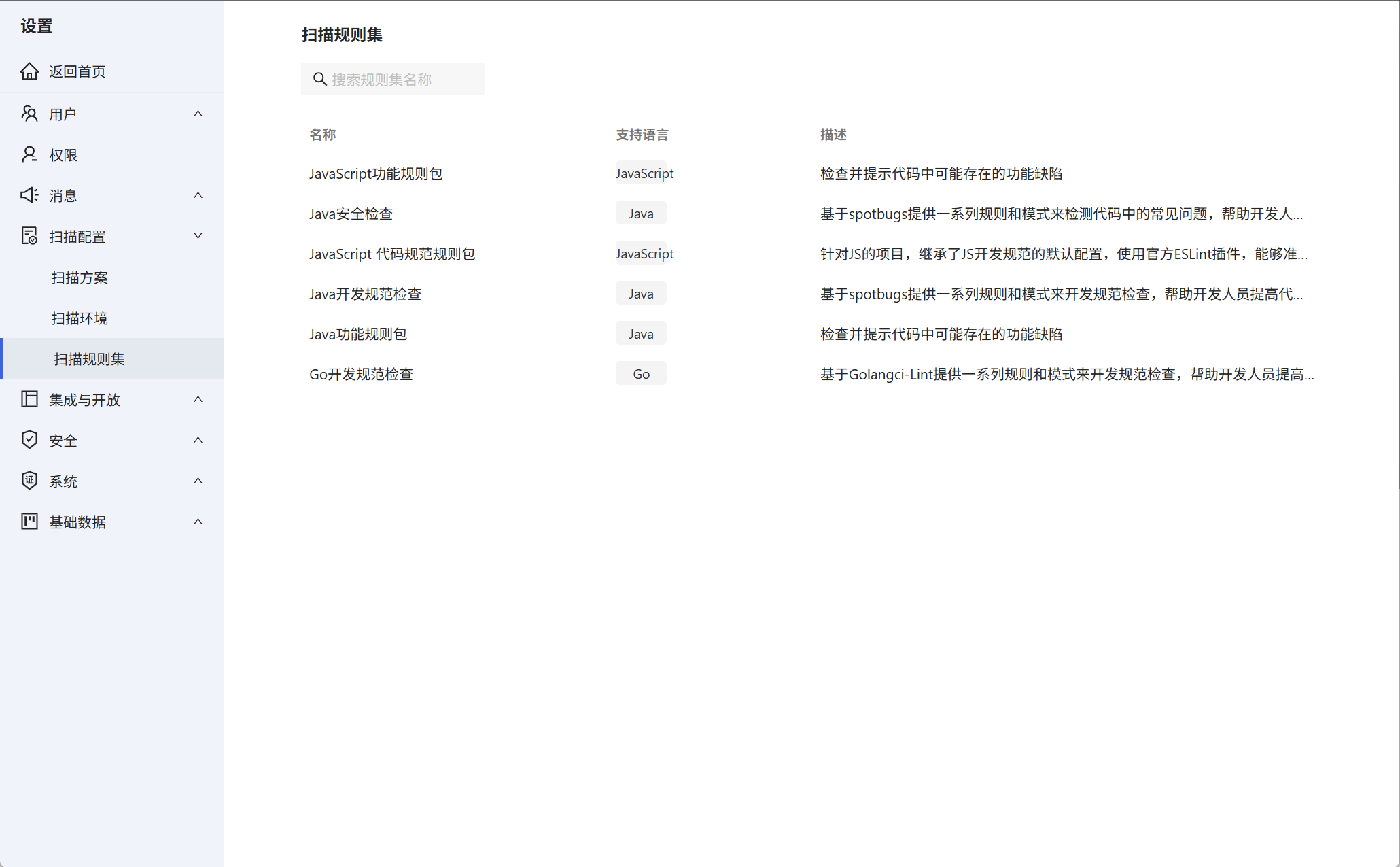 可自定义扫描方案,目前支持检测语言Java、JavaScript、Go等。