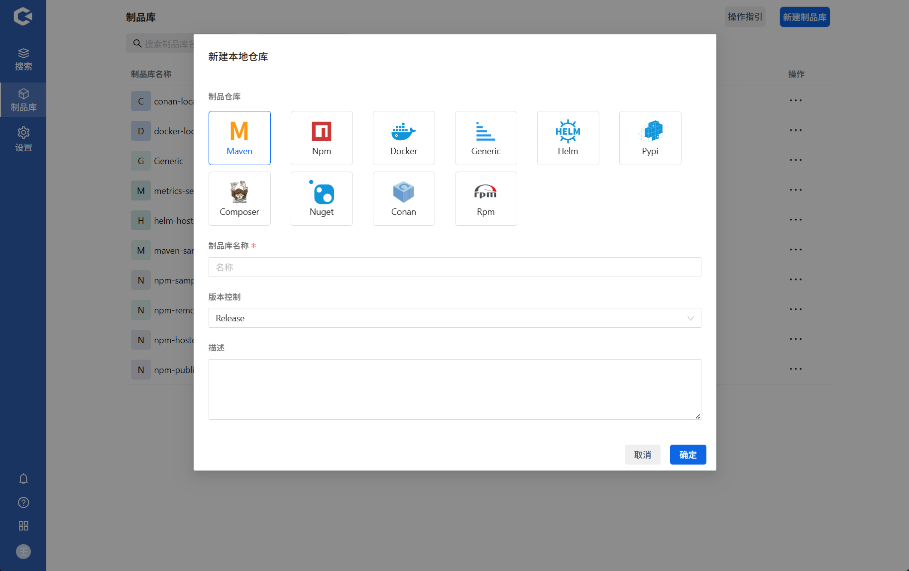 - 支持众多制品类型如Maven、npm、Go、Docker、Helm、Generic、Helm、pypi、Composer、Nuget、Conan、Rpm等