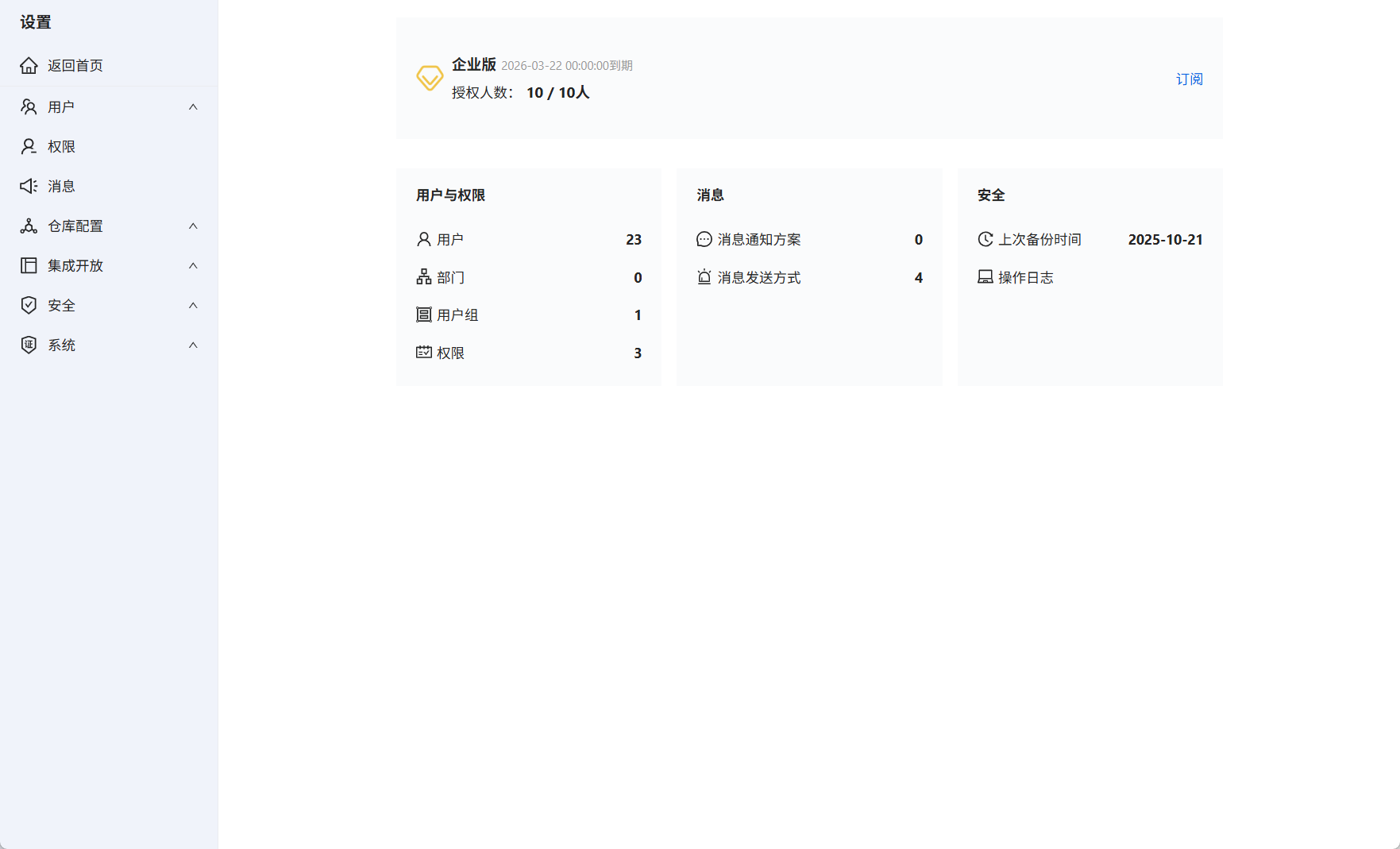 | 仓库管理 | 仓库管理 | ✔ | ✔ |