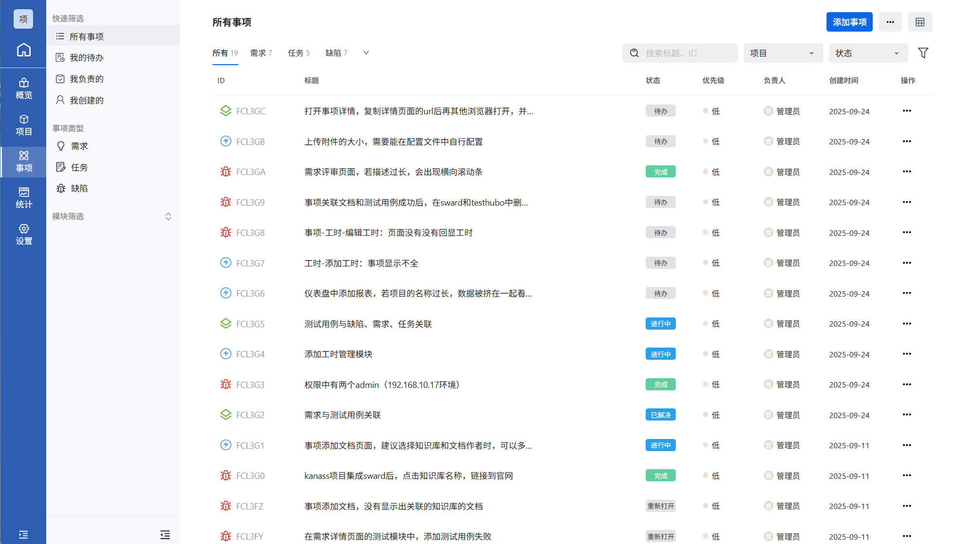 支持多种事项类型并提供工作流程、项目状态、事项状态等的自定义;