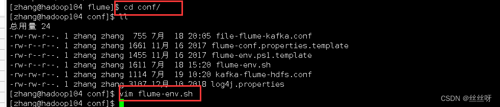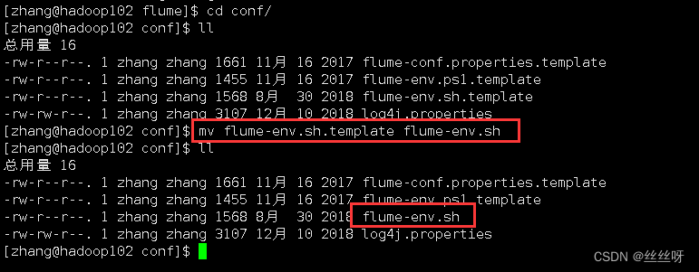 [zhang@hadoop102 conf]$ mv flume-env.sh.template flume-env.sh