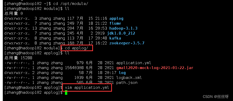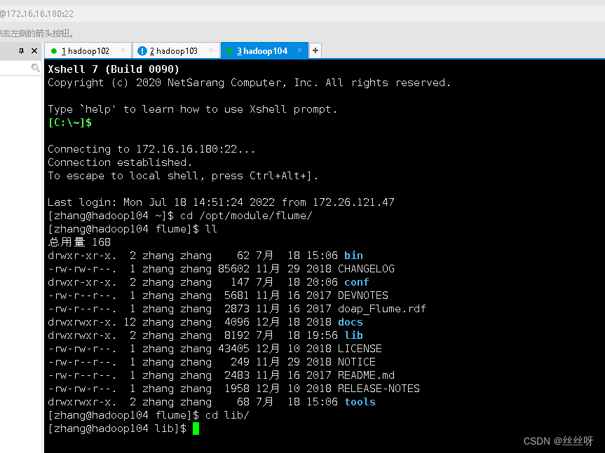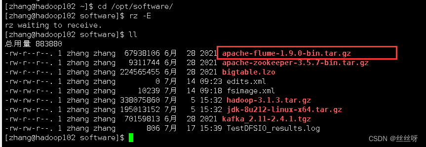 [zhang@hadoop102 software]$ tar -zxvf apache-flume-1.9.0-bin.tar.gz -C /opt/module/