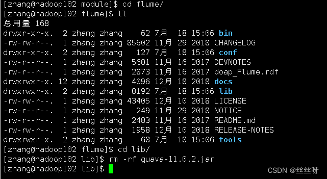 [zhang@hadoop102 module]$ rm /opt/module/flume/lib/guava-11.0.2.jar