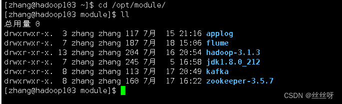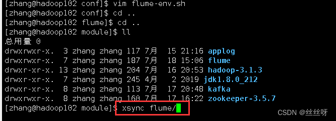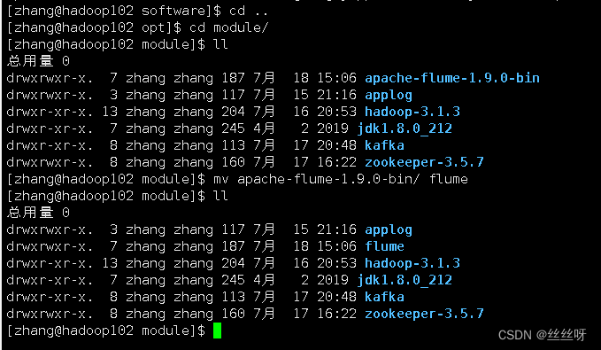 [zhang@hadoop102 module]$ mv apache-flume-1.9.0-bin/ flume