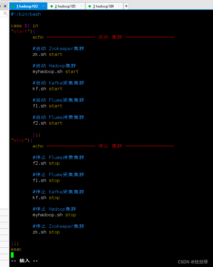 [zhang@hadoop102 bin]$ vim cluster.sh
