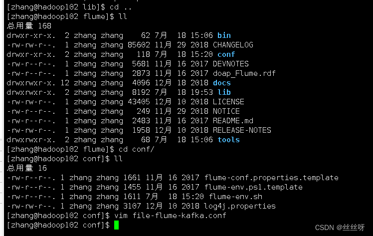 [zhang@hadoop102 conf]$ vim file-flume-kafka.conf
