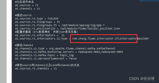 a1.sources.r1.interceptors.i1.type = com.zhang.flume.interceptor.ETLInterceptor$Builder