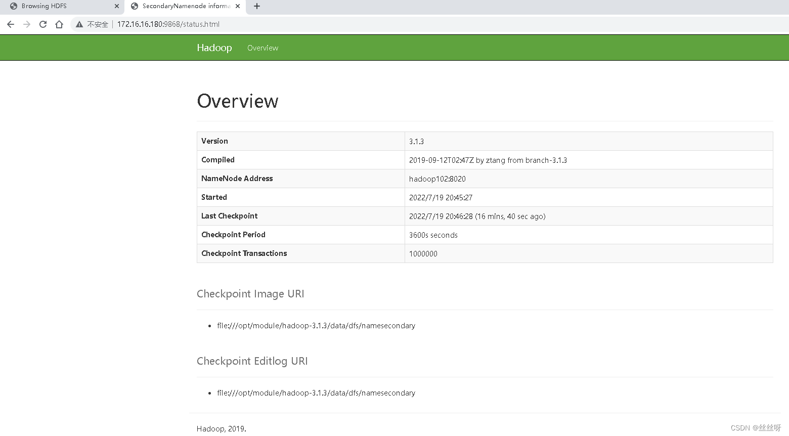 访问2NN页面http://hadoop104:9868,看不到详细信息