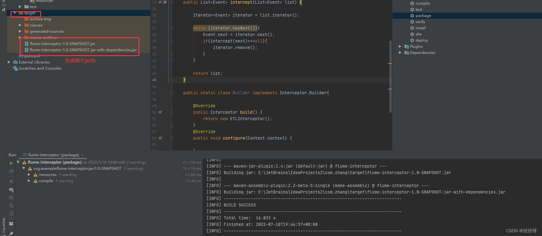导入jar包的时候,flume-interceptor-1.0-SNAPSHOT-jar-with-dependencies.jar文件是之前的,.0的文件才是最新文件,所以应该删除前面的文件,留下.0文件。当然出现问题之后直接回去重新删除jar包,重新导入就可以了。