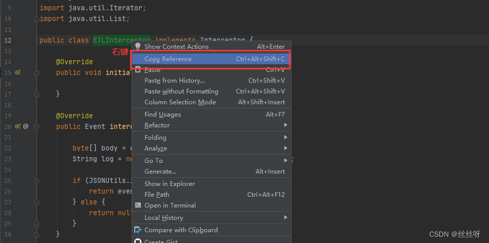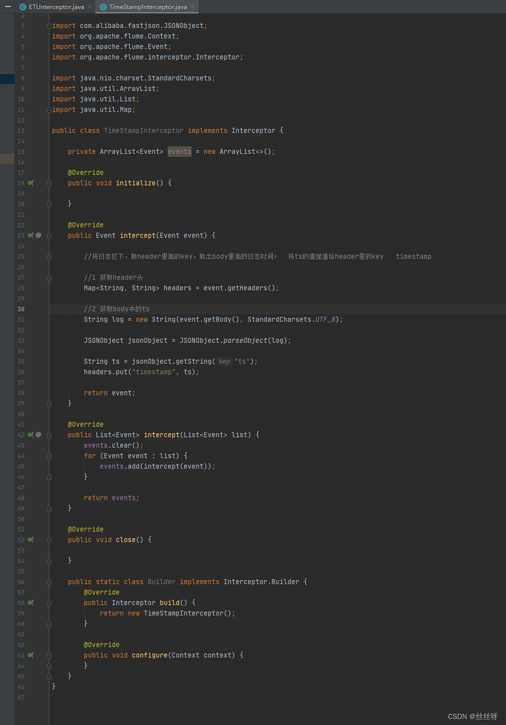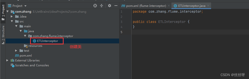 在com.zhang.flume.interceptor包下创建ETLInterceptor 类